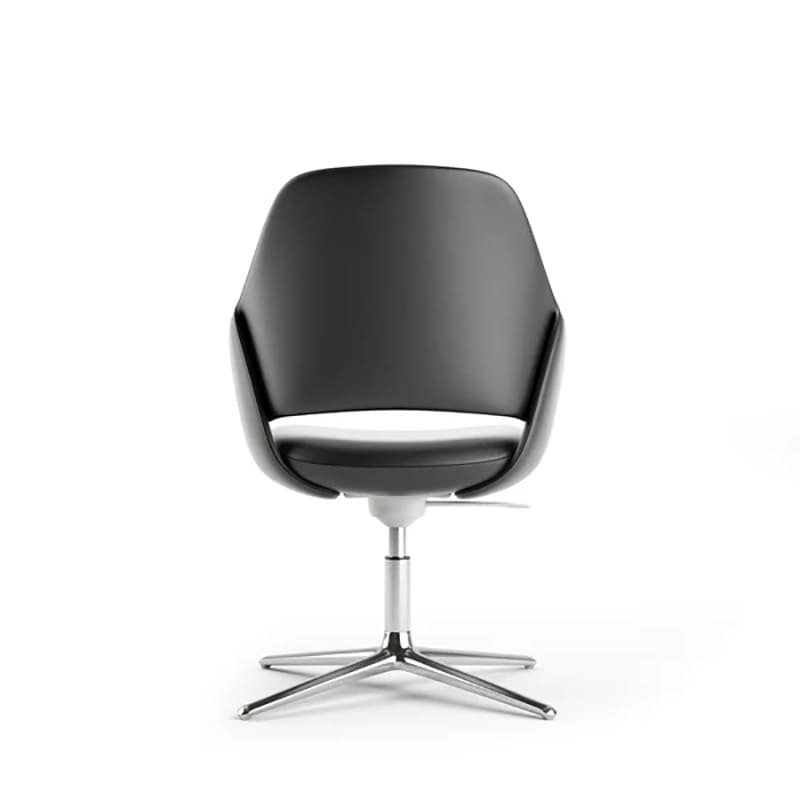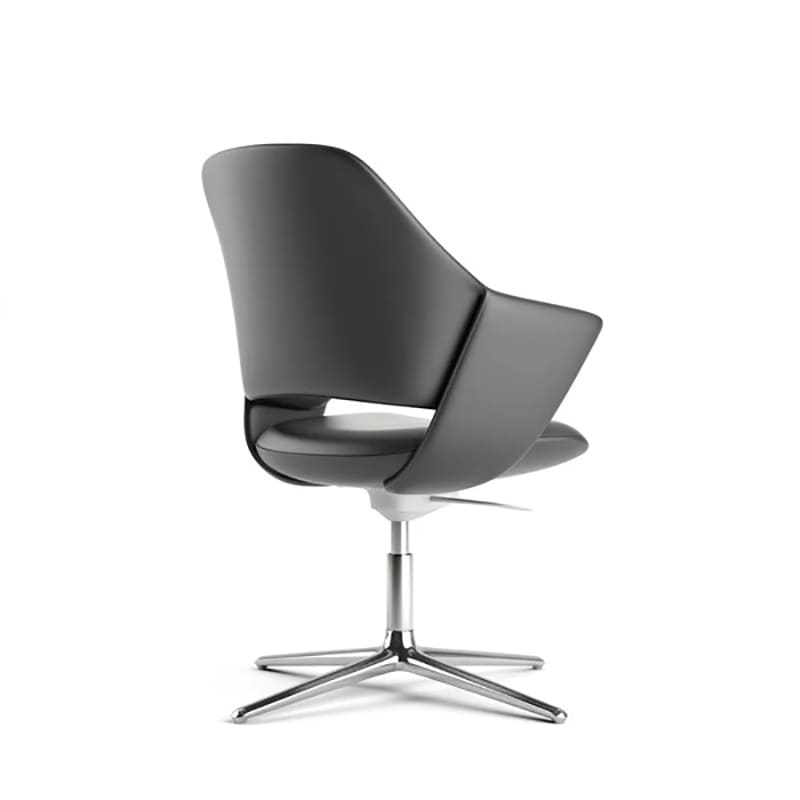 Respaldo: Bajo/medio, tapizado en curpiel con soporte lumbar básico.