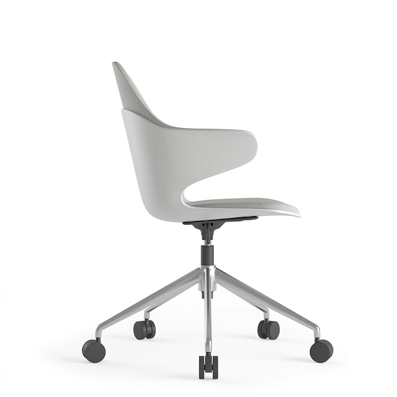 RESPALDO En una sola pieza de polipropileno con curvatura ergonómica y perforación decorativa.